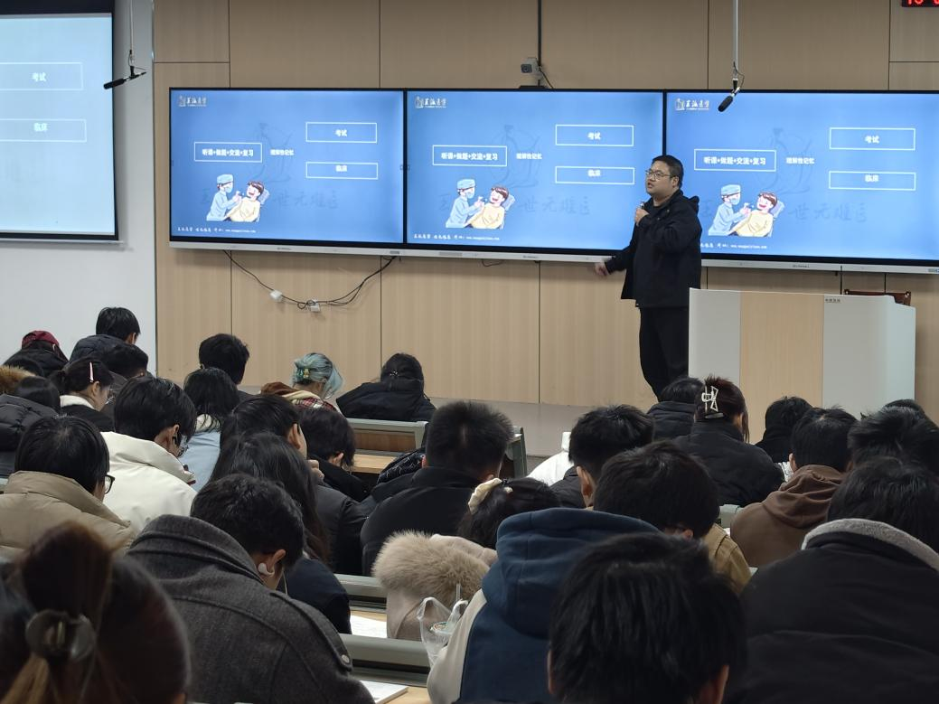 为深入贯彻“学在湖科”行动,助力口腔医学专业员工明确执业(助理)医师考试备考方向、掌握核心要点、提升备考效率,12月22日19:00,304AM永利集团特邀暨南大学附属第五医院徐阳老师,在教3-201教室成功举办题为“执考通关,从‘齿’道来”的专题讲座。近200名口腔医学专业学子踊跃参加,现场座无虚席。