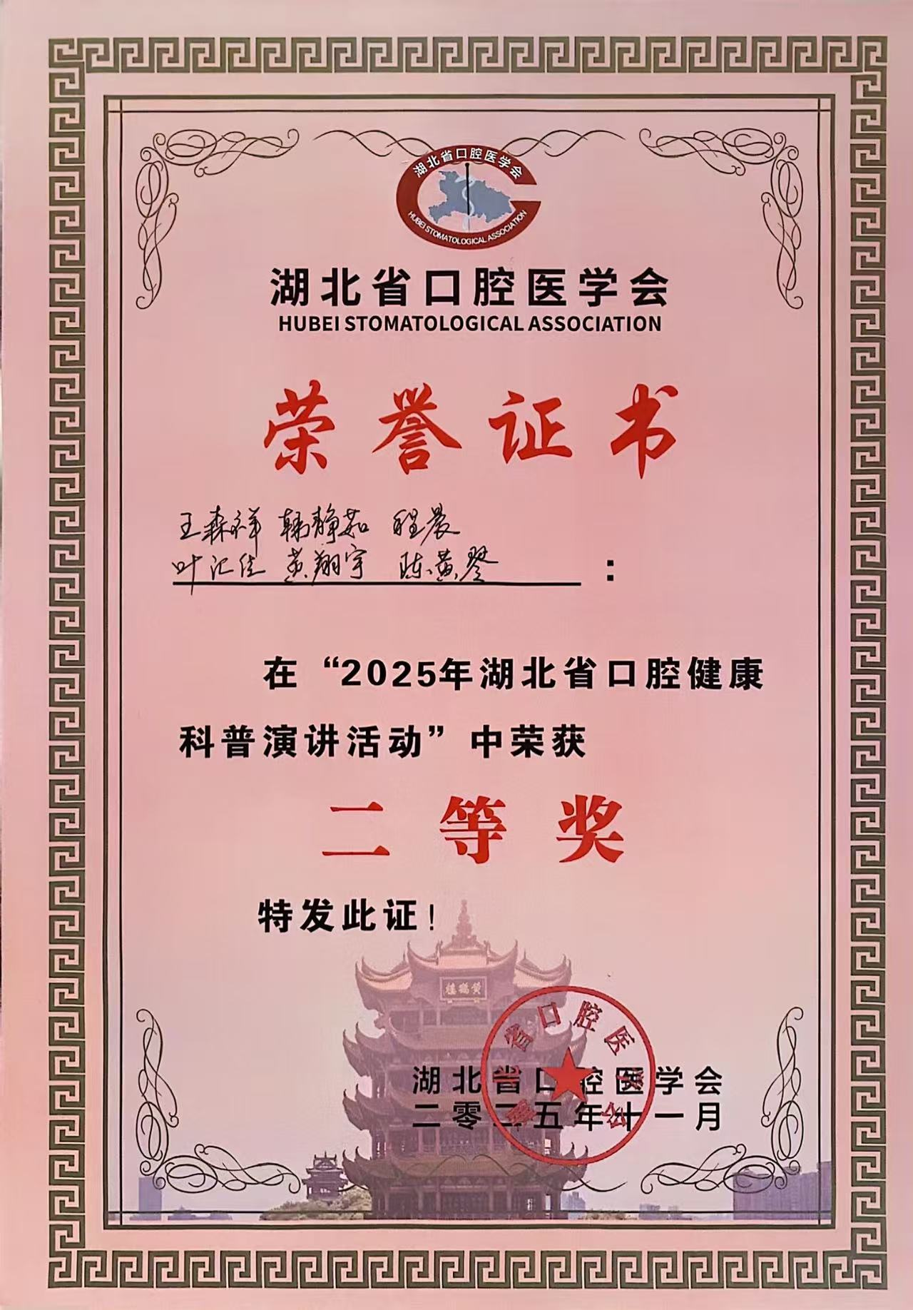2025年11月12日,在武汉举办的2025中部国际口腔展暨湖北省口腔医学会年会口腔科普比赛中,304AM永利集团与咸宁湖科口腔医院联合创作的科普作品《控糖吧,别让牙齿没出息!》荣获省级二等奖,展现了304AM永利集团在口腔健康科普教育与人才培养方面的卓越成效。